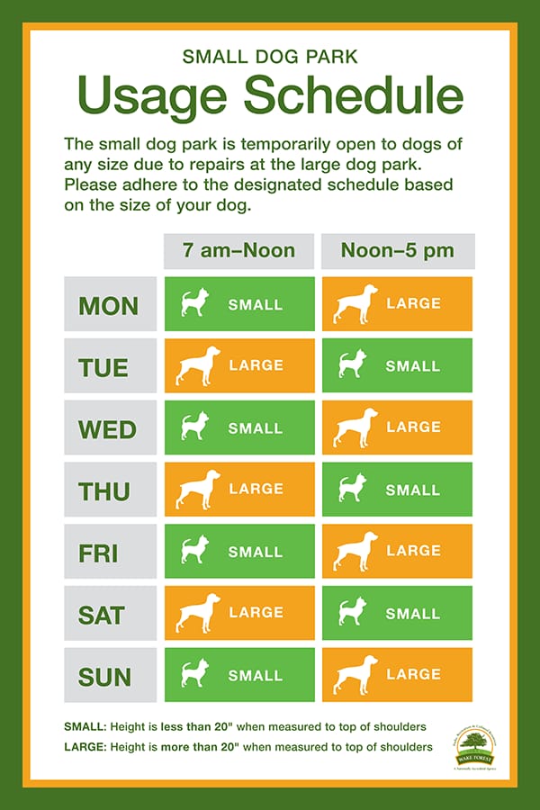 During the closure, the PRCR Department will implement a temporary usage schedule that will allow small dogs and large dogs to rotate daily usage of the small dog park.